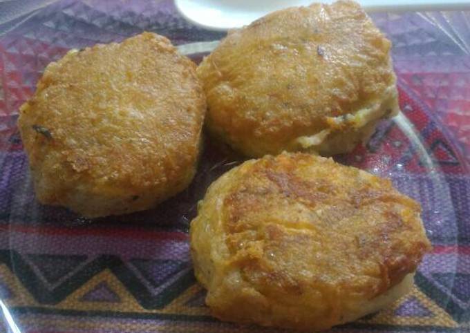 Perkedel salmon buatan Anda siap dihidangkan. Panaskan sedikit minyak di wajan datar. Perkedel Kentang Jagung Kornet.