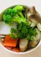 Campur tepung beras sagu air perasan lobak tadi. Brokoli jamur lobak wortel Niupang daun ketumbar air Garam lada halus bumbu kaldu secukup nya Ariani Noor Adianti Vegetarian Soup.